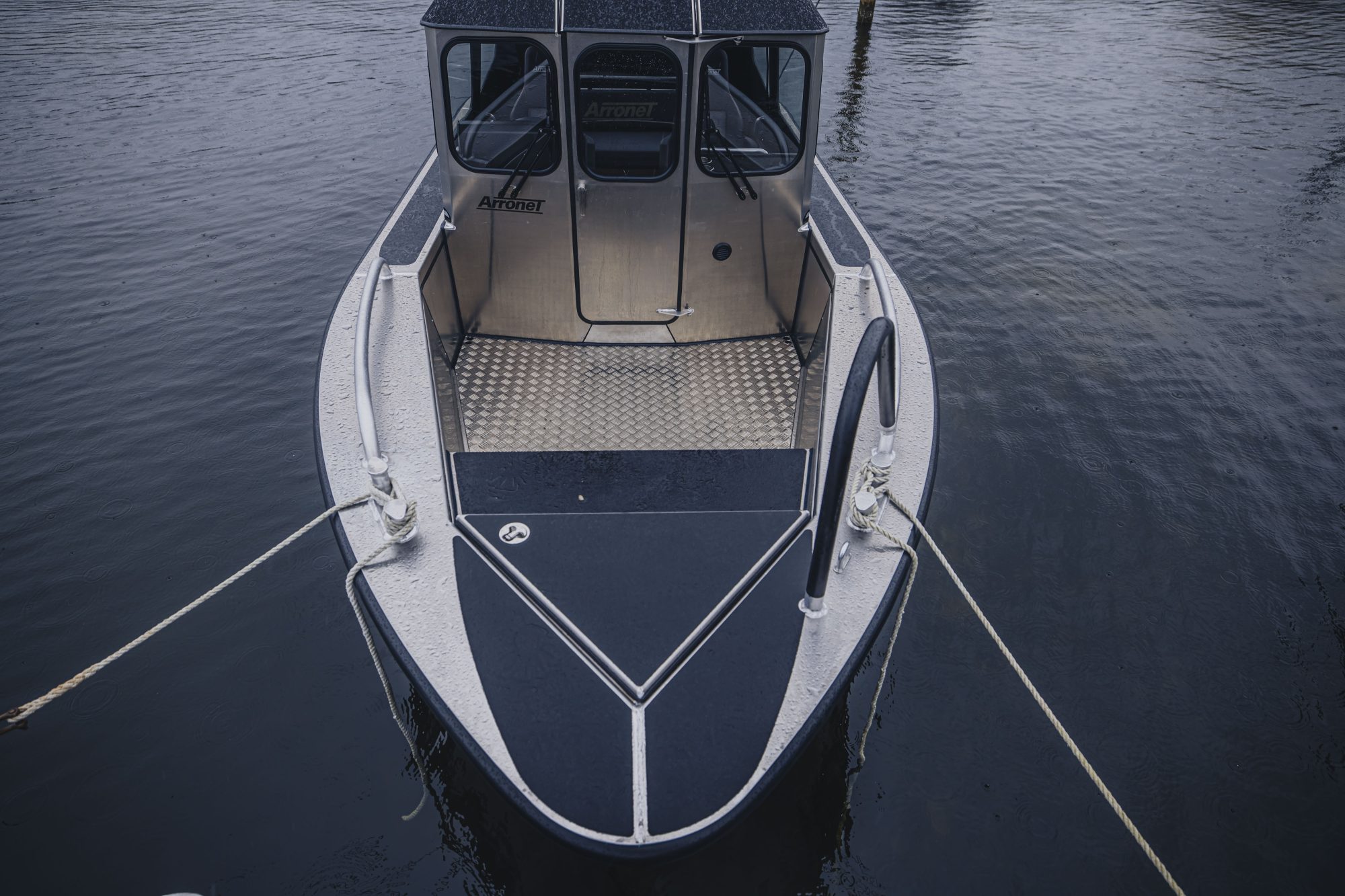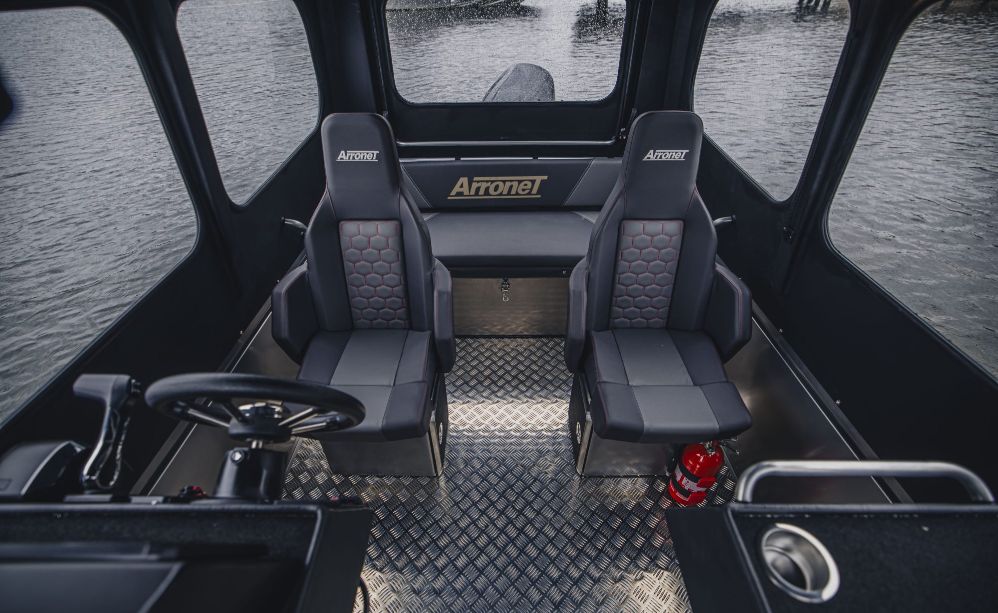 Arronet 185 C har genomgått en imponerande uppdatering som förenar robust funktionalitet med modern design. Denna aluminiumbåt, känd för sin hållbarhet och pålitlighet, har nu fått en ännu tuffare exteriör och en mer sofistikerad interiör. Exteriören har fått en snygg och stilren design med en del foliering på hytten samt skrovet. De uppgraderade sittplatserna erbjuder ökad bekvämlighet för både förare och passagerare. Materialvalen och färgschemat skapar en ljus och inbjudande atmosfär, vilket gör varje båttur till en njutning.