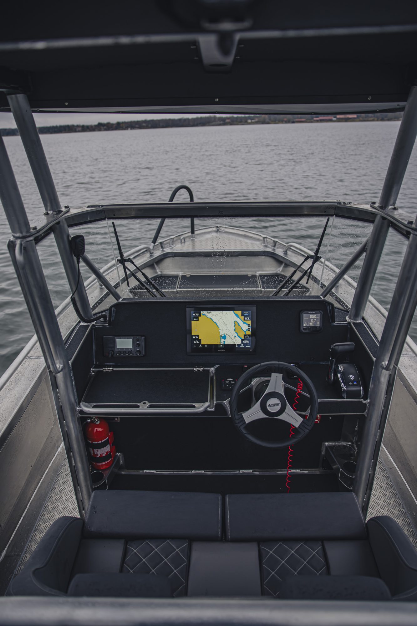 En dröm för fiskaren! Denna modell är utvecklad tillsammans med sportfiskeföretaget Nordic Sea Angling i Nordnorge. Taket är tillverkat i aluminium och skyddar både mot sol och salta stänk. Stabiliteten och det fria däcket runt hela pulpeten gör att flera fiskare kan arbeta samtidigt utan att störas av varandra. 10 st fiskespöhållare ingår i standard. Komplettera med fler av våra skruvbara hållare och båten blir skräddarsydd för ditt ändamål.