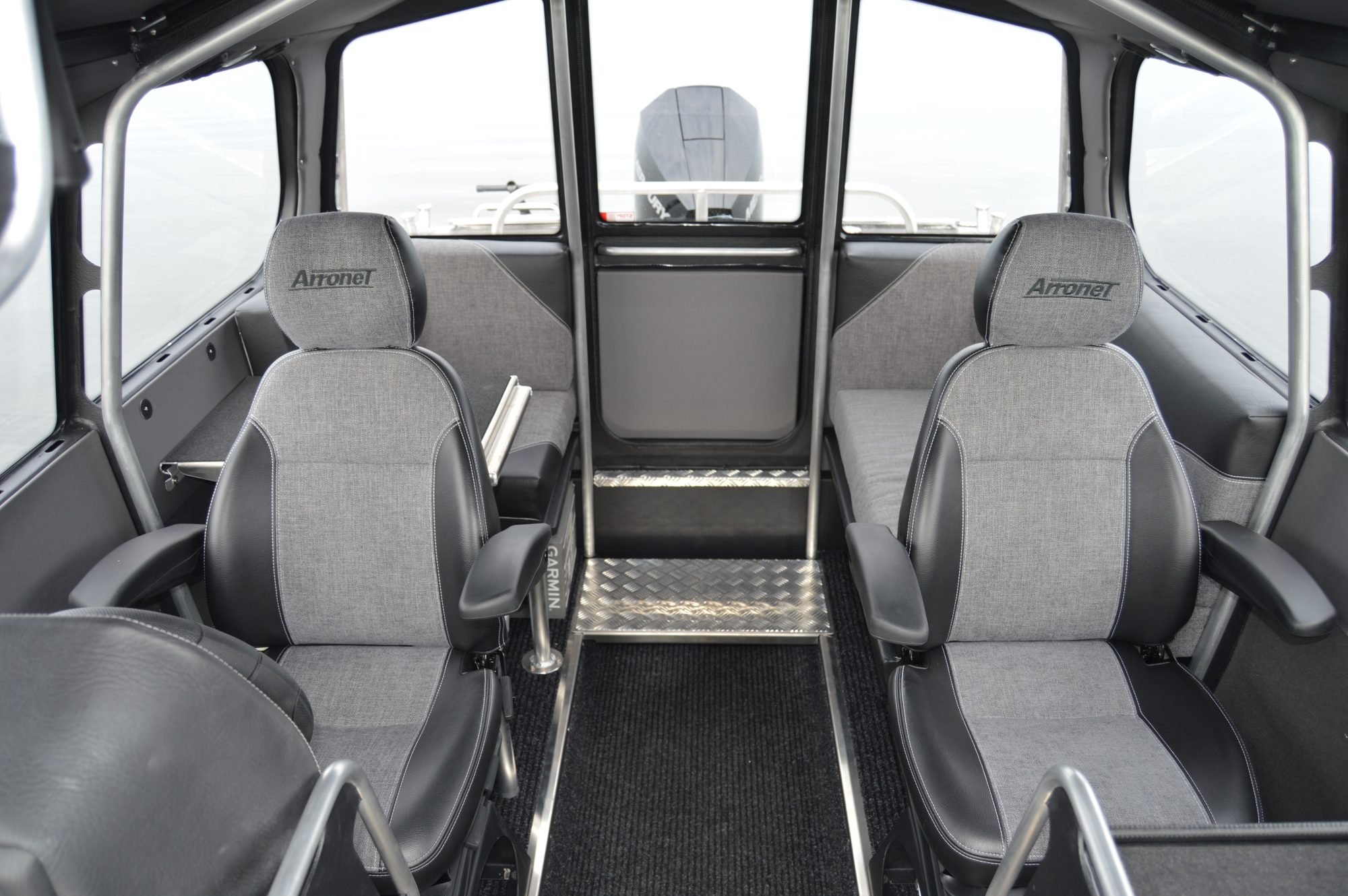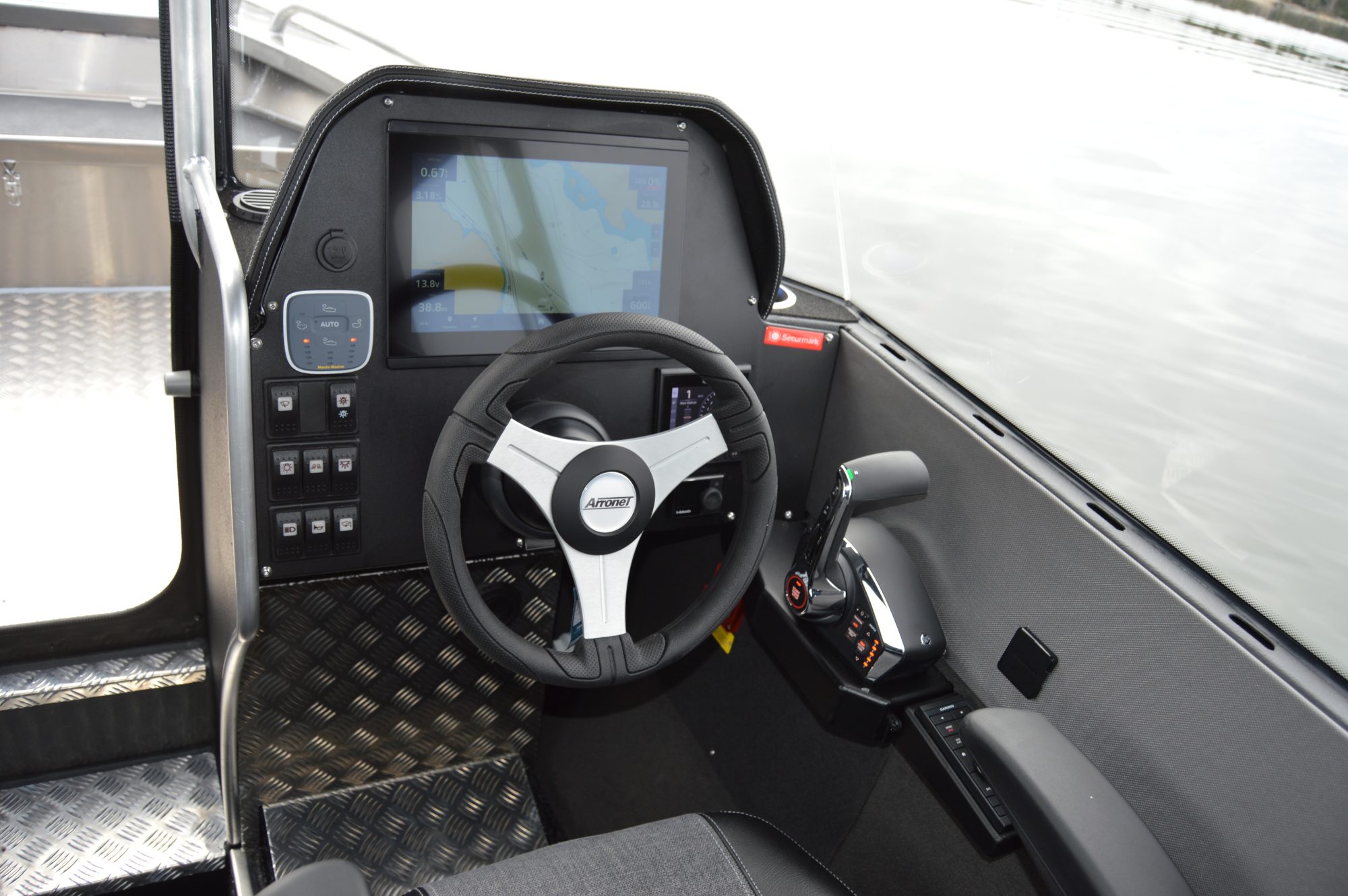 Det här är båten för dig som vill ha det bästa av två världar – kraft och kontroll kombinerat med komfort och tystnad. Arronet 235 Surprise är framtagen för att klara tuffa förhållanden utan att tumma på känslan bakom ratten. Den gummiupphängda hytten är inte bara en teknisk finess – den är en upplevelse i sig. Tack vare ”AQS” – Arronet Quiet System dämpas vibrationer och motorljud effektivt, vilket ger en tyst och behaglig resa, oavsett om du tar dig fram i maxfart eller ligger förtöjd med en kopp kaffe.