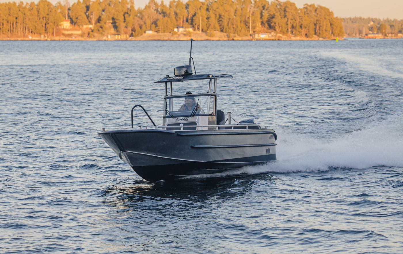 Arronet 24 5 SPT levererar en perfekt kombination av styrka och funktionalitet. Med sin öppna layout, skyddande tak och sitt robusta skrov ger den både trygghet och frihet för den som vill ut på vattnet en ruggig höstdag lika som en varm och härlig sommardag. Denna båt levererar en utrustning som är redan riklig från standard, bland annat en stor navigationsdisplay från Garmin, dubbla batterier med skiljerelä och härdade glasrutor. För mer information om utrustningen se offertförfrågan.