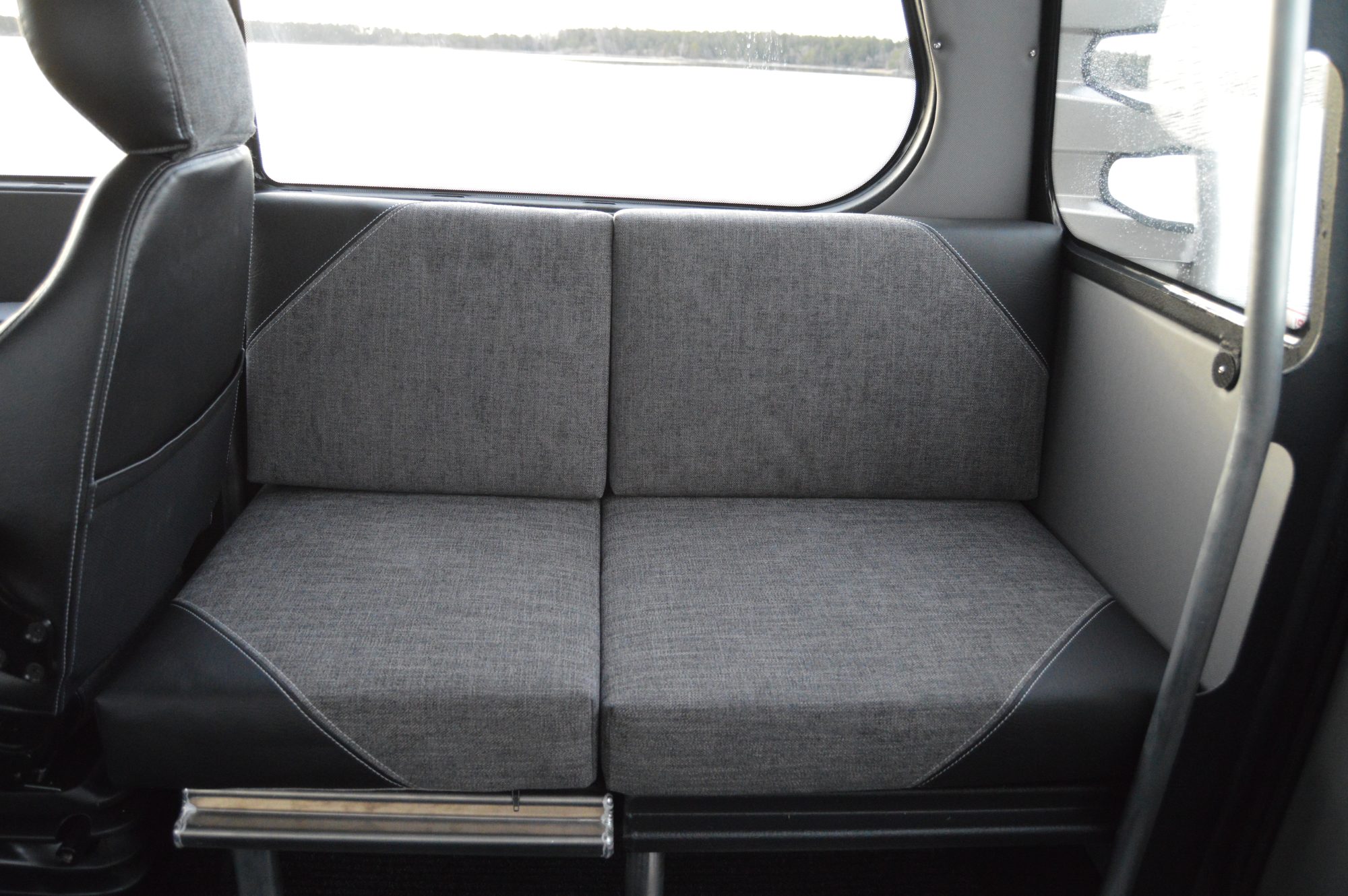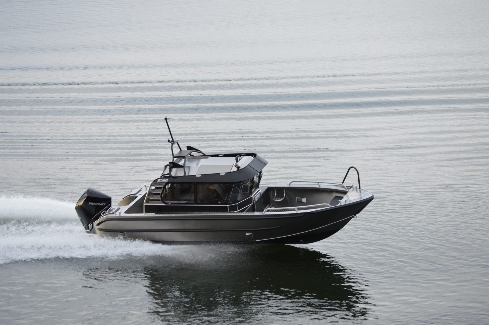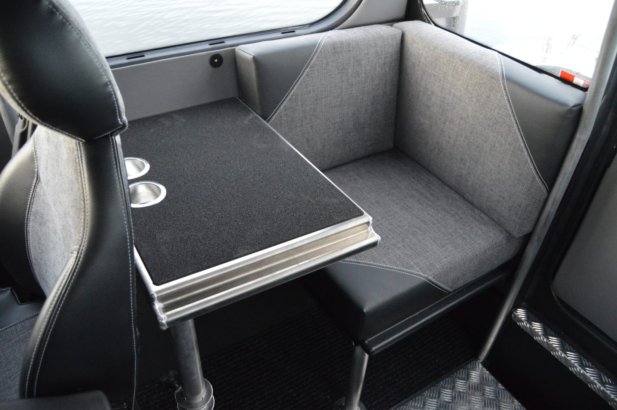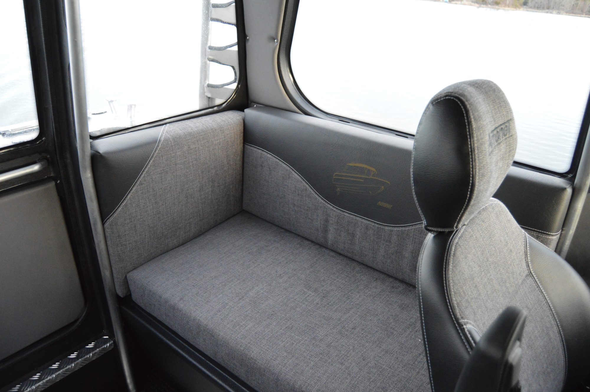 Det låga akterdäcket med praktisk skjutdörr är perfekt för alla typer av aktiviteter – oavsett om du är ute och fiskar, solar eller bara njuter av friheten på vattnet. De ergonomiska och fjädrade stolarna med justerbara inställningar för höjd, längd och hårdhet säkerställer en bekväm resa.