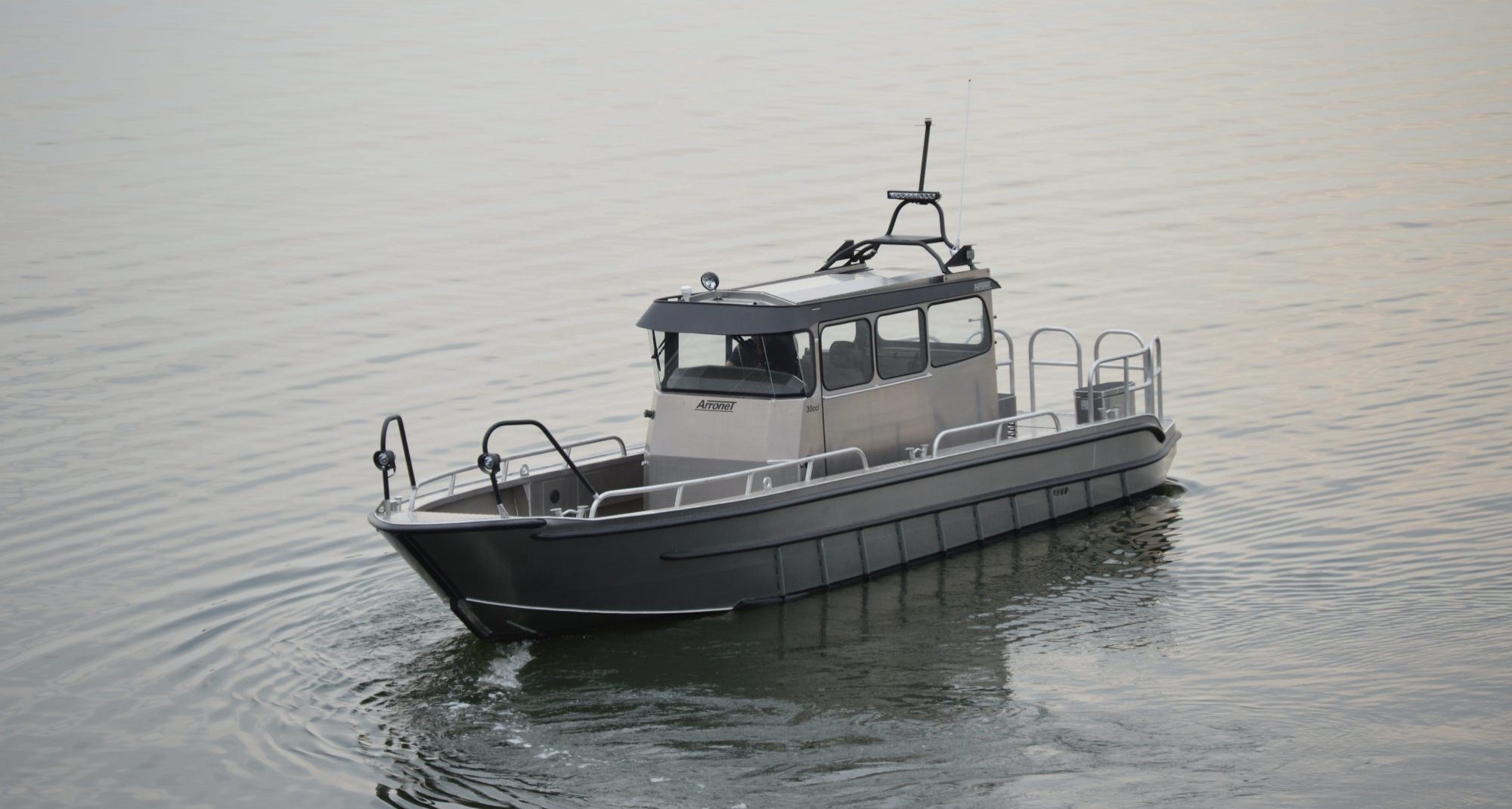 Arronet 30, 33 och 35 CC och Work (ramp adderas som tillbehör) är kraftfulla och genomtänkta arbetsbåtar byggda för dig som ställer höga krav på funktion, slitstyrka och arbetsyta. Oavsett om du väljer 30-, 33- eller 35-fotsmodellen får du samma pålitliga konstruktion – skillnaden ligger i längden på fördäcket, vilket ger dig möjlighet att anpassa båten efter dina behov.