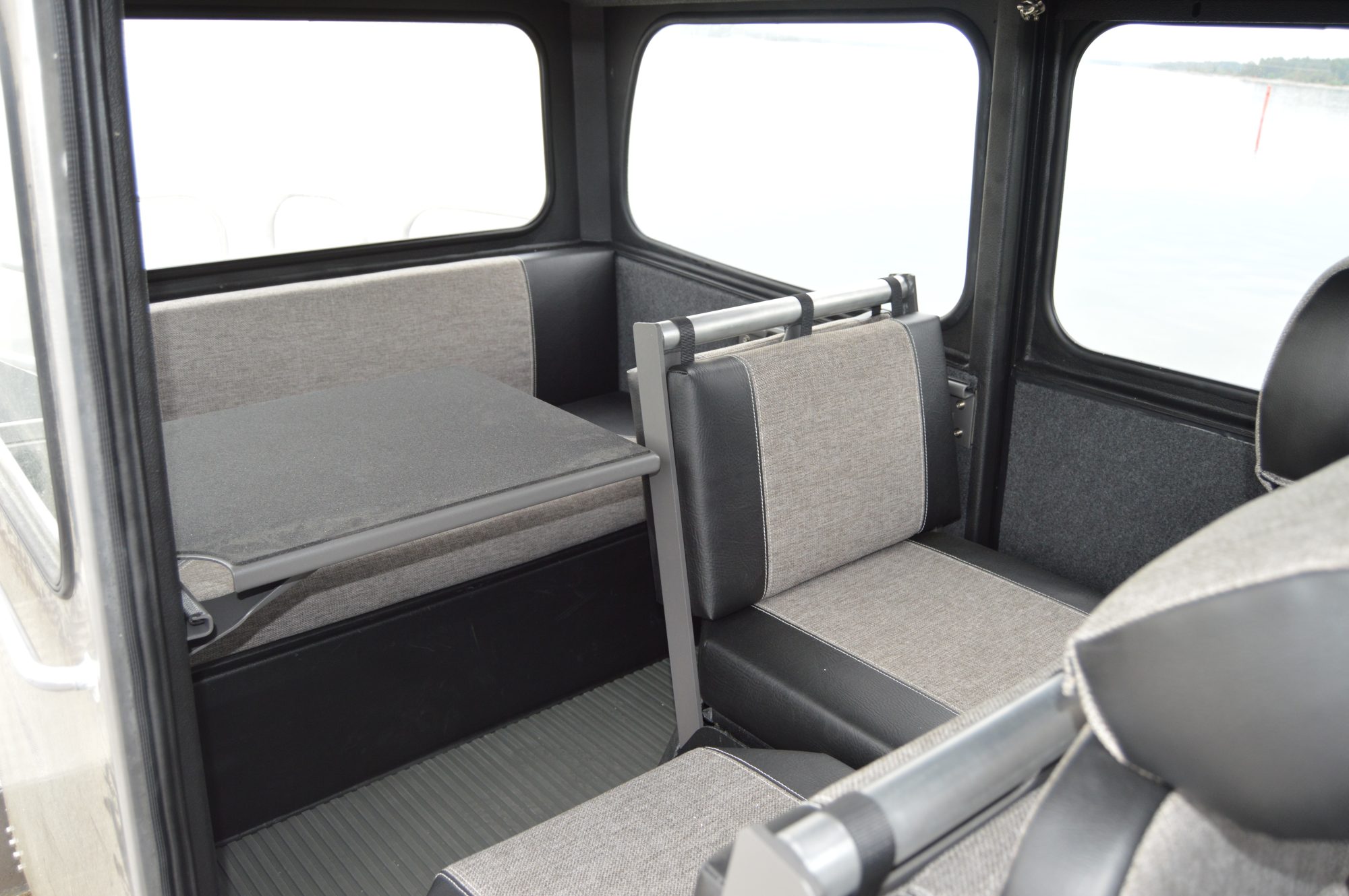 Aktersoffa med uppfällbart kastdäck - Ger extra sittplatser och kan enkelt omvandlas till ett kastdäck för fiske.