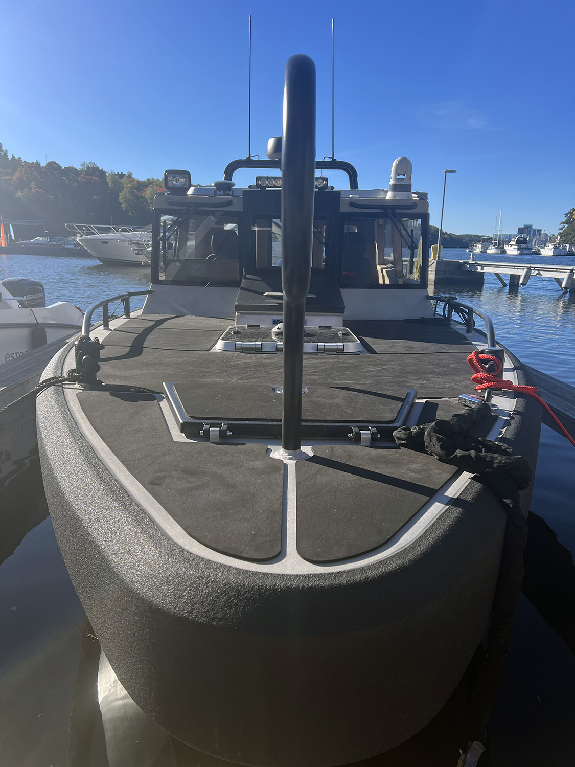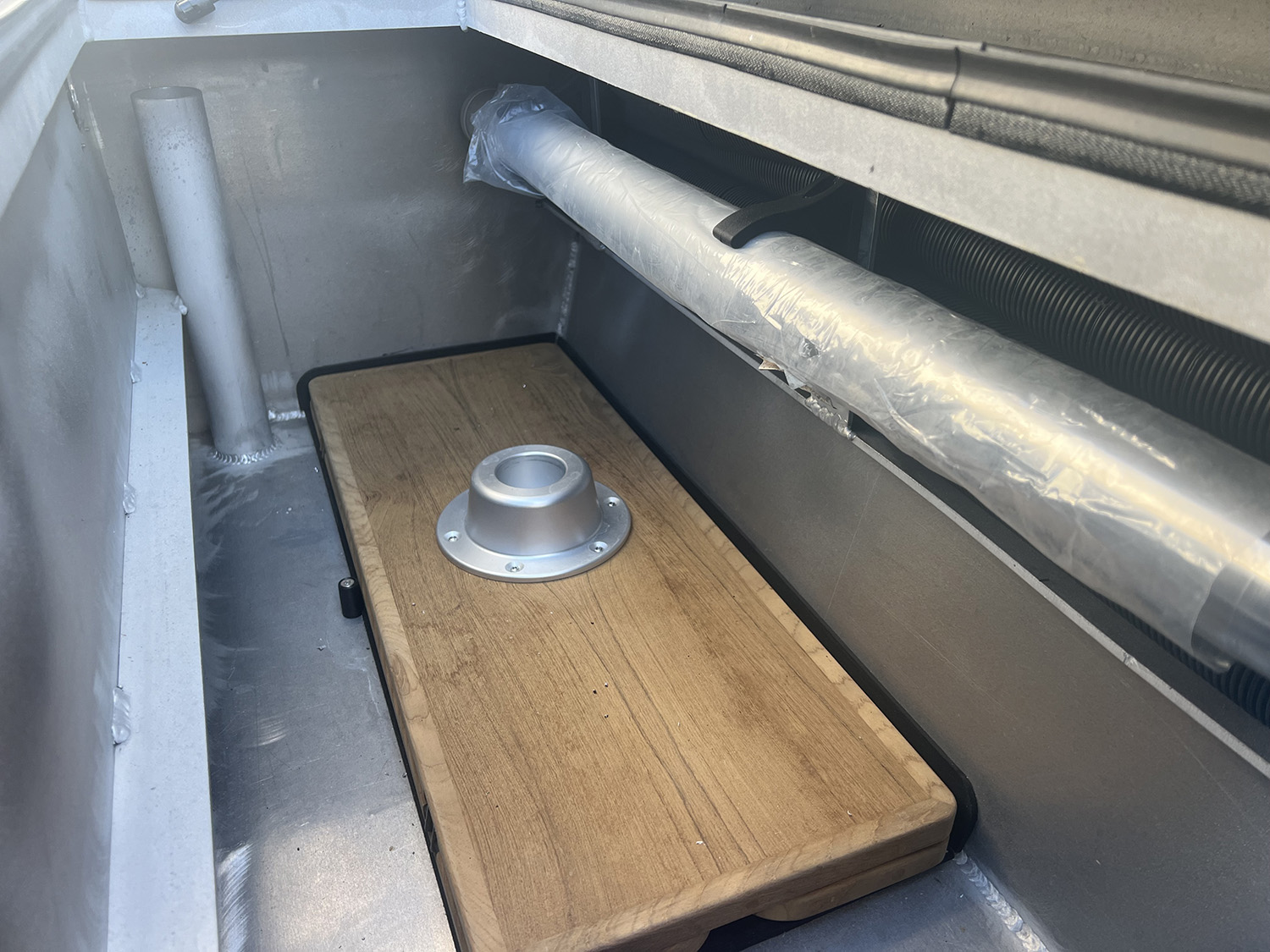 Hyttinnerliner isolerad från skrovet för att isolera bort vattenljud